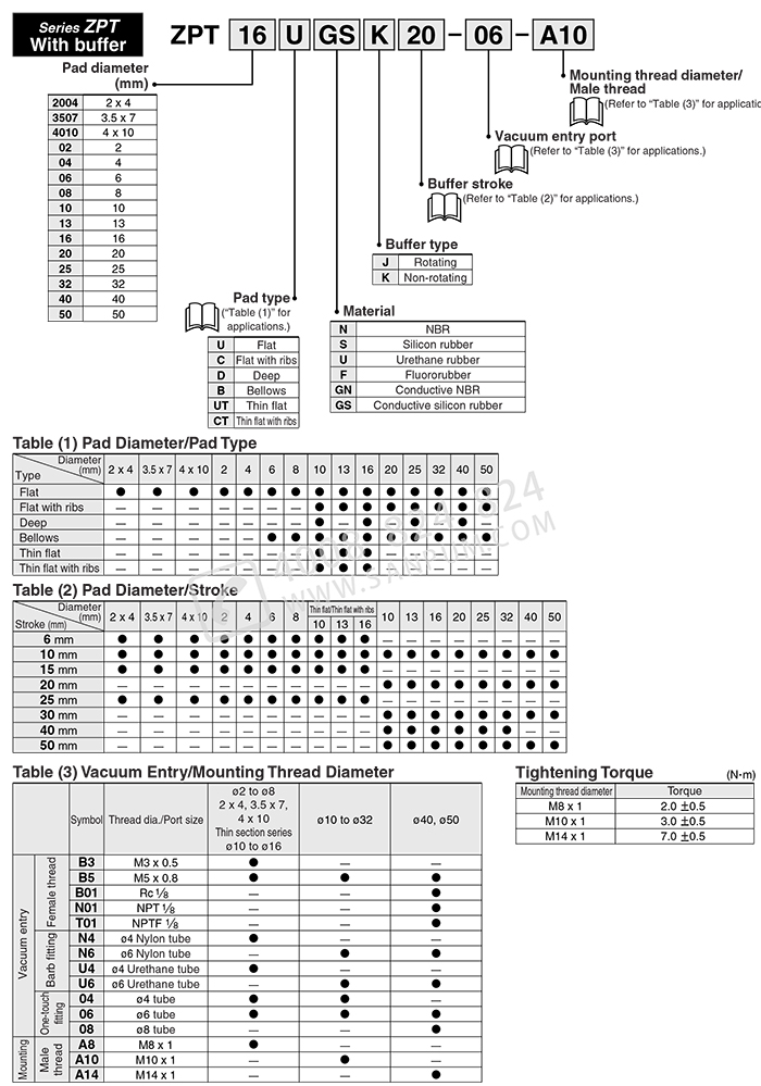 217910/ZPT02UNK6-B3-A8/纵向带缓冲真空吸盘ZPT