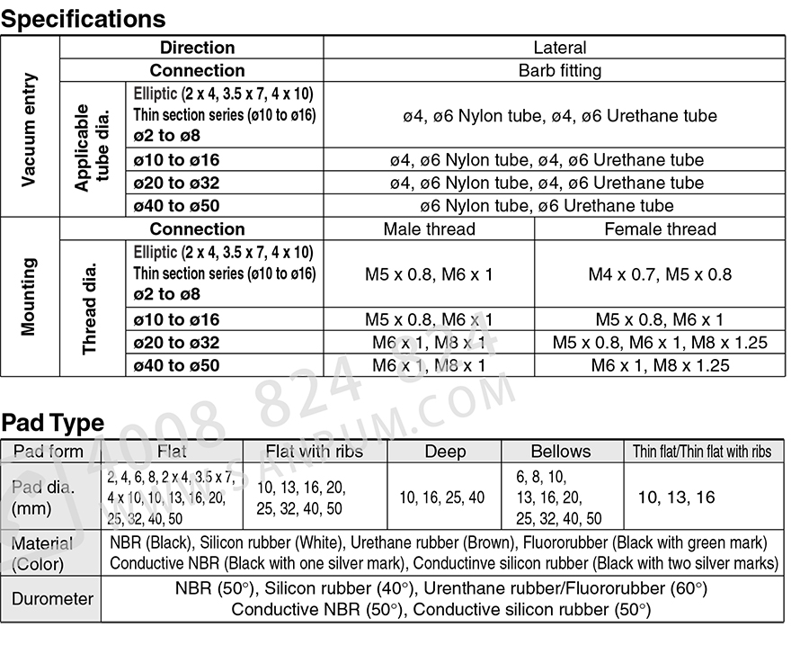 217916/ZPY02UN-N4-A5/横向带倒钩接头真空吸盘ZPY