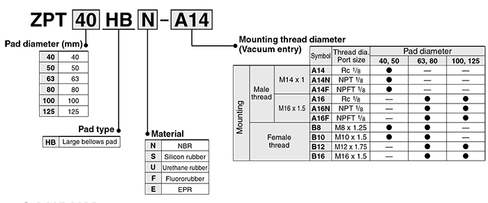 217934/ZPT50HBN-A14/波纹真空吸盘ZPT