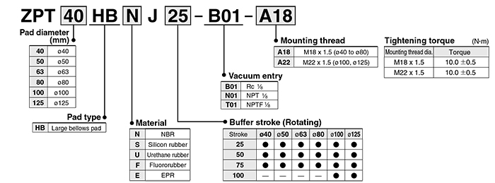217935/ZPT40HBNJ25-B01-A18/带缓冲波纹真空吸盘ZPT