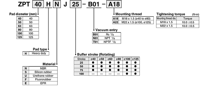 217944/ZPT50HNJ25-B01-A18/带缓冲重载型真空吸盘ZPT