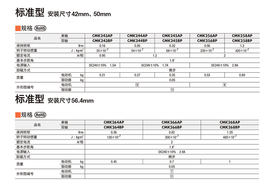 220443/CMK256BP/CMK系列标准型2相步进马达