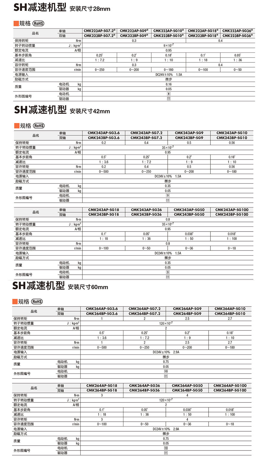 220455/CMK223BP-SG9/CMK系列SH减速机型2相步进马达