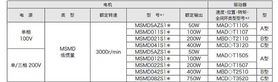 220657/MSMD021S1A/MSMD低惯量(绝对式)伺服电机