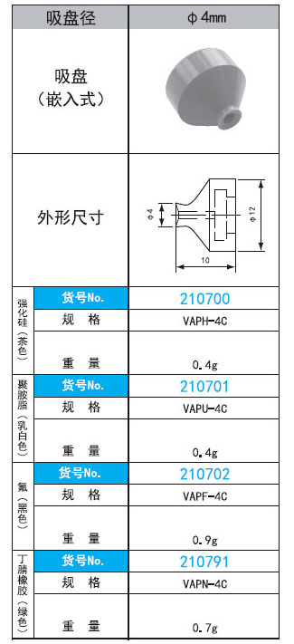 221345/VAPH-4C/VAP-4C系列直径4mm嵌入式真空吸盘