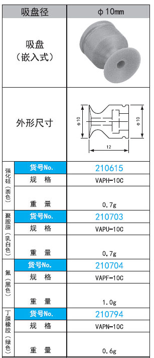 221357/VAPH-10C/VAP-10C系列直径10mm嵌入式真空吸盘