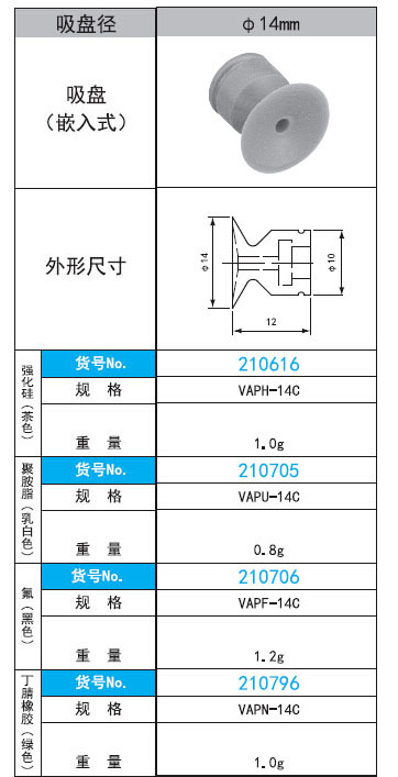 VAP-14C系列直径14mm嵌入式真空吸盘