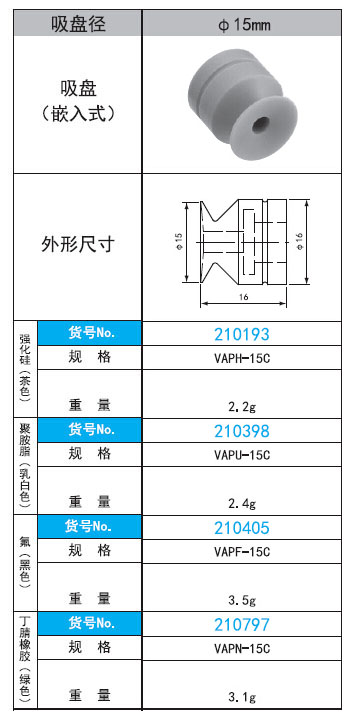 221369/VAPH-15C/VAP-15C系列直径15mm嵌入式真空吸盘
