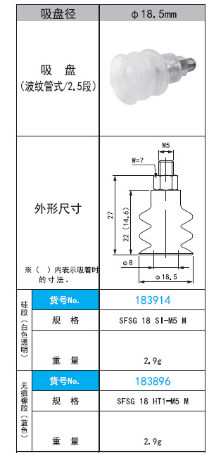 221512/SFSG 18 SI-M5 M/SFSG 18 SI·HT1 -M5 M直径18.5mm波纹管式/2.5段吸盘