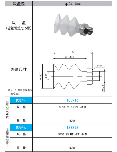 SFSG 25 SI·HT1 -PT1/8 M直径24.7mm波纹管式/2.5段吸盘