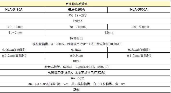 长距离微小光点检测,测定范围内φ1~2mm(HLA-D130A);