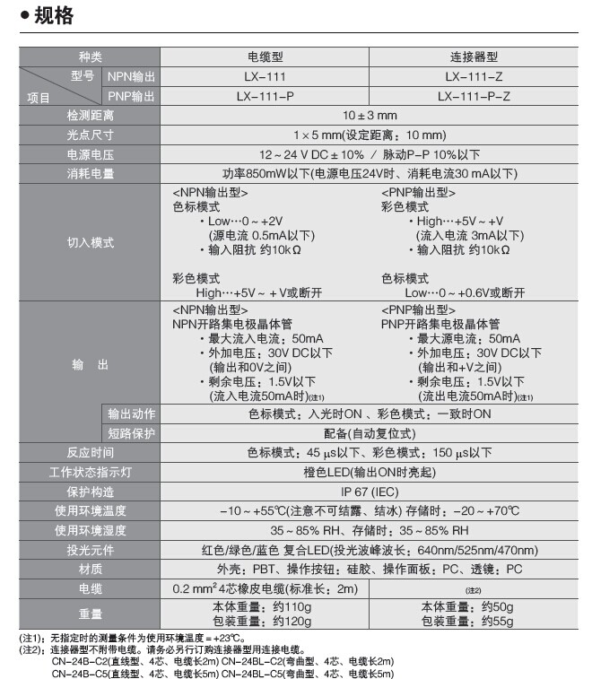 LX-111系列检测彩虹的色标传感器