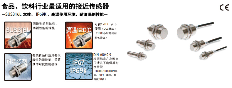 SUS316L本体、IP69K、高温使用环境、耐清洗剂性能;