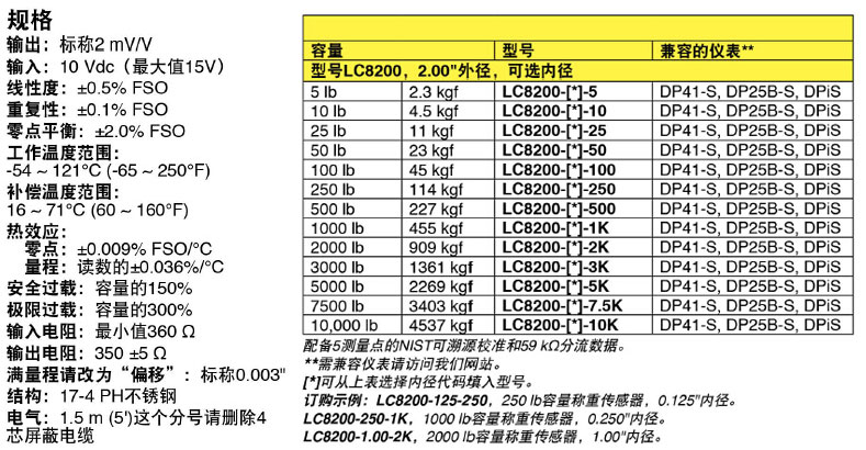 LC8200系列紧凑型通孔称重力传感器(2.00"外径)