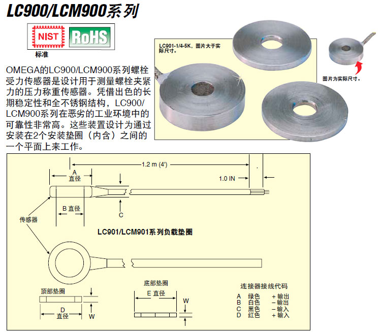 LC900系列螺栓受力传感器(带安装垫圈标准和公制型号)
