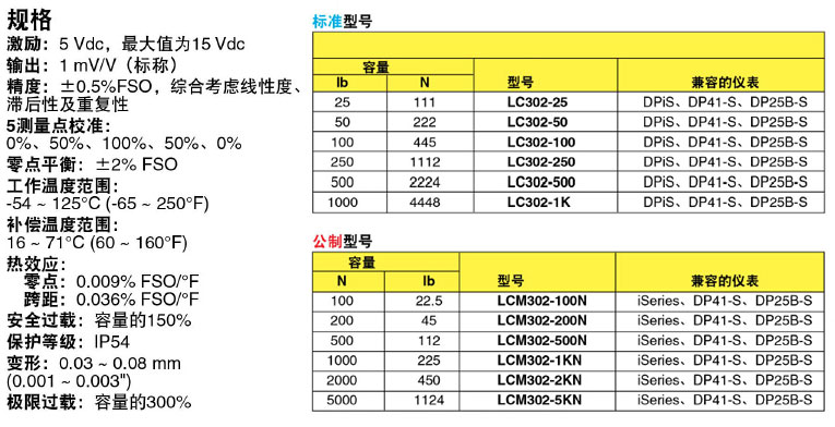 LCM302系列直径仅19mm的不锈钢压缩称重传感器(标准及公制型号)