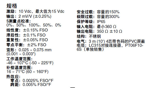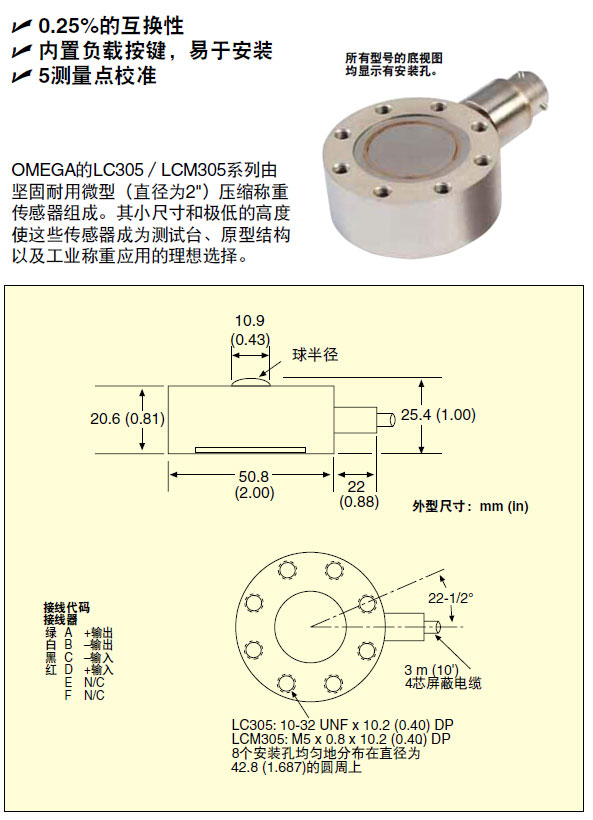 0.25%的互换性; 内置负载按键,易于安装; 5测量点标准;
