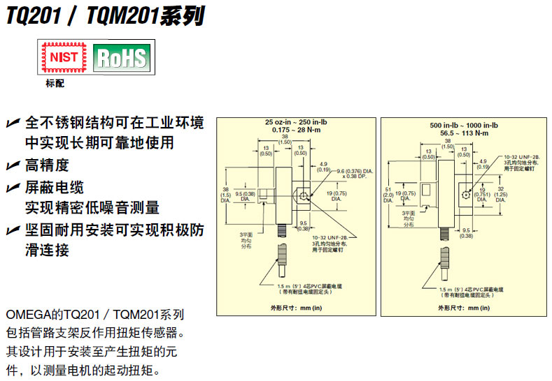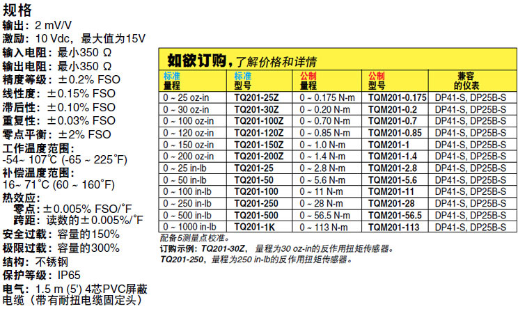 TQ201系列反作用扭矩传感器(轴支架扭矩量程标准及公制型号)