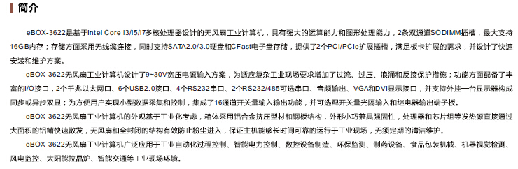 eBOX-3622系列 Intel® Core i3/i5/i7无风扇工业计算机,2个PCI/PCIe插槽