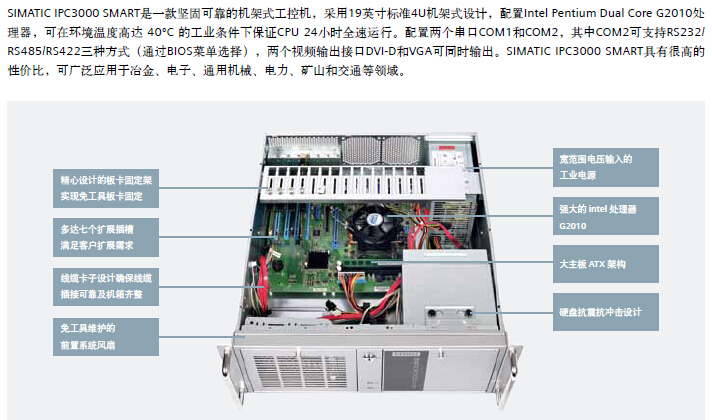 配置Intel Pentium Dual Core G2010处理器,两个串口COM1和COM2,其中COM2可支持RS232/ RS485/RS422三种方式.
