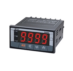 超级功能面板表;多种输出选择(基本规格:显示型)RS485通信输出,低速串行输出;电流(4-20mA),BCD输出,NPN/PNP集电极开路输出, 继电器输出;最大测量输入规格:500VDC, 500VAC, DC5A, AC5A;最大显示范围:-1999 ~9999 ;高/低限位缩放功能;AC频率测量功能:0.1~9999Hz;多种功能:最大和最小值监视功能,显示周期延迟功能,归零功能,显示校正功能,电流输出缩放功能;宽电源范围:100-240VAC