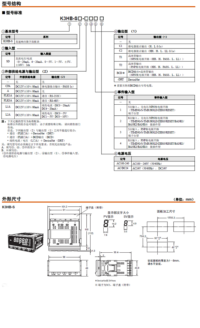 高速、高精度测量、判别;动作判定显示色,可切换绿色/红色2种显示颜色;配备的分压计用于监视操作趋势;外部事件输入可应用于各种测量和辨别情况;DeviceNet型的系列化;进深(面板以下)仅为95mm的超短尺寸;2 •UL标准适用认证(标识认证;经第三方机构认证,符合CE标志;NEMA4X标准(相当于IP66)的防水构造.
