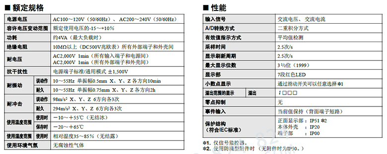 DIN48X96尺寸的小型机身;面板表面的厚度只有3.5mm,采用平面构造;高识别性的14.2mm高亮度LED;根据平均值检测的有效值指示方式;IP51的防水构造(安装附件时).